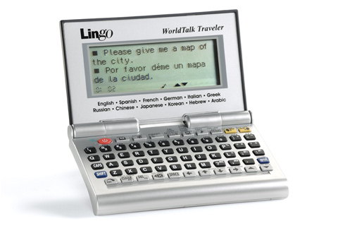 The World Talk Traveler from Lingo is the Talking Translator that pronounces over 720,00 words and 39,600 typical phrases in 12 languages – including English, Spanish, French, Italian, German, Russian, Chinese, Japanese, Korean, Greek, Hebrew and Arabic. Pocket sized and portable, The World Talk Translator can help your worldwide travel be satisfying, as you order the meals you like, find the shopping you’re looking for and ask the questions that deepen your international experience. The Lingo World Talk Translator translates with both audio and display.