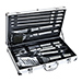 • Tools include: spatula, fork, tongs, knife, basting brush, grill brush, 6 steak knives, 6 dinner forks, 4 skewers, and salt and pepper shakers