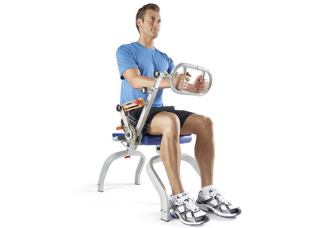 • 12 workout positions for total body fitness including: chest presses, bicep curls, seated rows, calf raises, hamstring curls, seated leg extensions, crunches, and reverse tucks