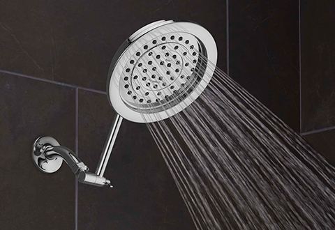 • Included 9” extension arm makes it easy to adjust the height and spray angle so family members can each have the shower experience they want