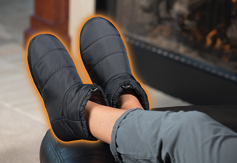 Rechargeable Heated Slippers provide up to 10 hours of heat on a full charge, so you can wear them all day long!