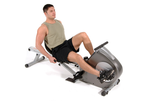 The Recumbent Bike and Rower is comfortable with adjustable, molded foam padded, seats, pedal foot straps to keep feet firmly in place and rotating rowing pedals. It offers 8 levels of smooth, quiet magnetic resistance and has a built-in multi-function electronic monitor that tracks speed, distance, time, calories burned, and pulse rate. Features sturdy steel construction, has wheels for portability and folds compactly so you can easily stash it in a closet when it's not in use.
