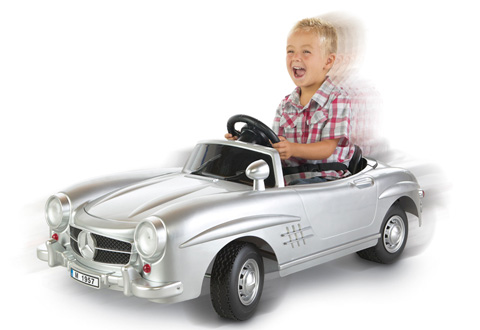 The Ride-On Mercedes Benz Replica is sure to be the toast of the toddler set. This rechargeable ride-on toy goes forward and backward on 6V battery power, with a top speed of 2.5 m.p.h.