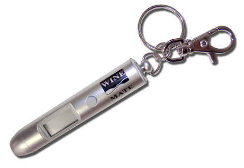 Simply hold the infrared thermometer top on the bottle, press the button, and read your wines temperature on the digital display. The thermometer is crafted of stainless steel and is small enough to fit in the palm of your hand or hang on your keychain. Its take-along size means you'll always be ready in case a bottle of wine pops up unexpectedly! Includes 2 Alkaline batteries.