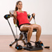 Includes an easel-mounted fitness planner with illustrated instructions for 35 different workouts; include curls, bench presses, shoulder presses, leg extensions and more. When you're done, the durable, steel-framed trainer folds in half to only 1-ft. high for convenient out-of-sight storage under a bed or in a closet. Comfortable 2" foam-padded seat adjusts to three positions and can also be optimized for individuals' body heights—perfect for those who are taller or shorter than average. Its textured foot rest helps maintain stability. Assembly required.