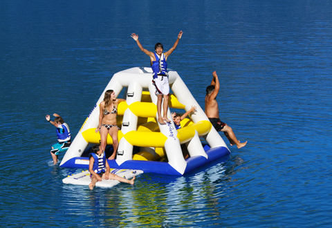 Climb, slide and splash; or rest and relax. With room for 6, the Inflatable Climbing Water Tower can handle plenty of either. A day on the lake will take on a new meaning, as this water tower becomes the focal point of extreme fun. You don’t need to worry about damaging this inflatable tower, the fabric is specially treated for high resistance to the sun’s rays, and hot air welded seams increases durability. Add the interlocking Splashmat to extend water fun possibilities.