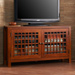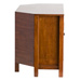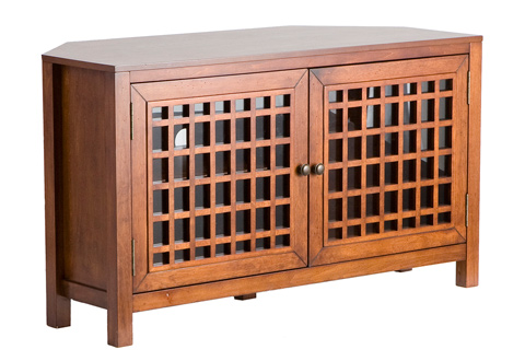 Fitting a rectangle TV cabinet into a corner is like fitting a square peg into a round hole. But with this beautiful Narita Corner TV Stand you can optimize your space and viewable angles. The distressed, walnut finish adds beauty and warmth to any room. The window-pane cabinet front itself is not only charming, but extremely hard working as a place to hide away all your technology and components. All cords, wires and plugs are tucked away and beautifully managed.