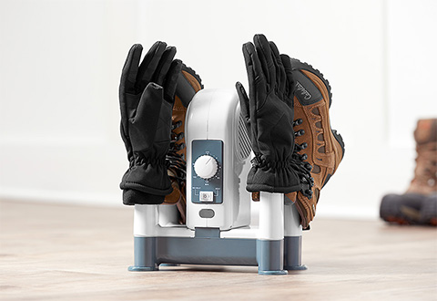 Why wait all day for cold, wet boots and gloves to dry out? The Shoe, Boot and Glove Dryer dries footwear and gloves quickly and quietly. An optional heat switch warms them up before you venture outside!