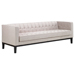 Long, lean and sleek, our Manhattan Sofa measures a full 89” in length, delivering the elegant look so favored in contemporary design. Don’t let the many right angles make you think this sofa is all form and no function; it’s actually very plush and comfortable with its tufted cushions. The fabric is a cream colored satin - and it’s absolutely gorgeous. This modern urban sofa will ‘make’ your living room a standout for design, and, when grouped with the love seat and arm chair in this 3-piece setting, the effect will be stunning.