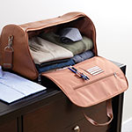 The wide mouth duffle bag is easy to access. When placed in the hotel room on a chair, bed or table it is easy to lift clothes right out of the bag.