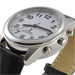 The black leather band on the Talking Atomic Watch fits wrists up to 8 ½”, and both men and women will find this timepiece both attractive and highly useful. Keep it on a nightstand for telling them time without opening your eyes! This unusual watch combines top features such as Atomic Clock accuracy with voiced-time functionality.