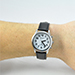 • Stainless steel with black leather band