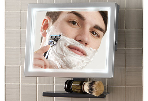 The Pivoting Fog-Free LED Shower Mirror stays clear, even during a steamy shower. And, it’s not just for men. Women love it for tweezing, exfoliating and removing makeup.
