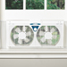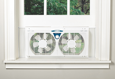 Brings air in, or pushes stale air out. The versatile Reversible Twin Window Fan will help you cut costs of expensive air conditioning by cooling your environment with fresh air. Choose your settings, and the thermostat will help you regulate airflow. Fits windows from 25” to 35” wide and 12” high and larger. Lightweight with carry handle. Ideal for nighttime comfort.