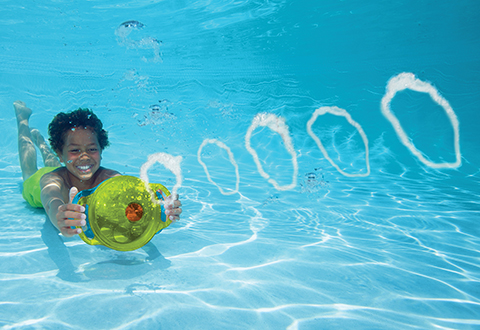 Pool time is always a blast with our Bubble Ring Blaster. Take it underwater and squeeze the handles — amazing bubble rings appear like magic.