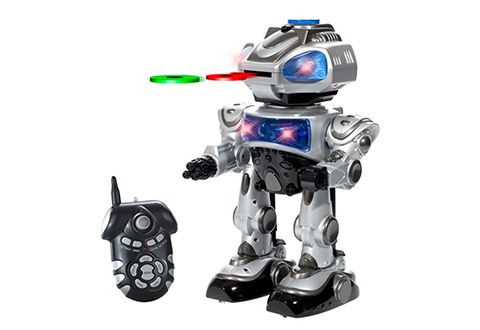The Disc-Shooting Robot walks, turns, moves its head and fires foam discs from its mouth, along with flashing LEDs and exciting sound effects.