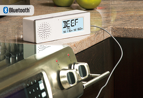 The rechargeable Bluetooth Speaker with Roasting Thermometer lets you enjoy high-quality wireless music while your roast is in the oven.