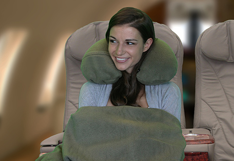 The Travel Pillow/Blanket keeps you warm and cozy on your flight… and saves space too!