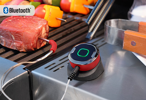 The Mini Bluetooth Grill Thermometer keeps an eye on your food… so you don’t have to. Just choose a preset grilling preference and insert the probe. It lets you know when your food is “getting close,” “almost done” or "done.”