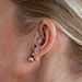 • Adjust the volume by tapping on your ear two times in quick succession. You will hear 1 to 4 beeps as it changes settings: 1 beep = quietest setting, 4 beeps = loudest setting.