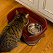 - Cat (all sizes of kittens and cats, with shoulder height range up to 6”) includes 1-cup and 1.5-cup stainless steel bowls. Cat feeder can be placed on the floor or a counter. Bowl height: 3” from floor.