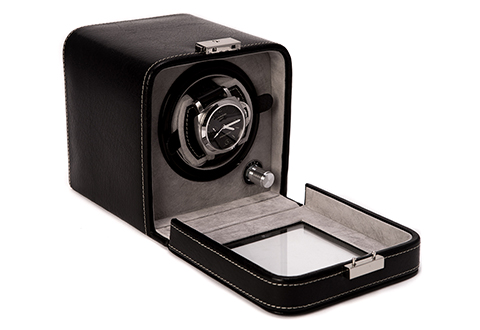 • Elegant black leather watch winder