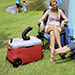 • 2 large wheels and a pull handle for easy transport