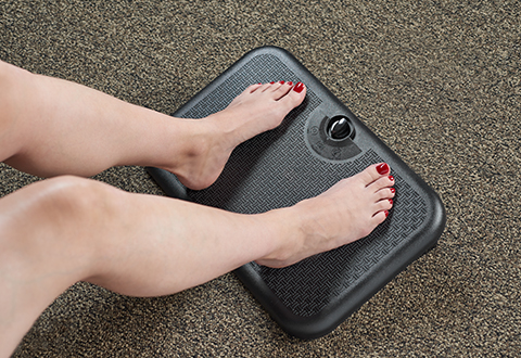 Warm your feet… without blowing circuits! The Ergonomic Heated Footrest uses radiant heat to gently warm cold feet and legs while using 95% less energy than a typical space heater.