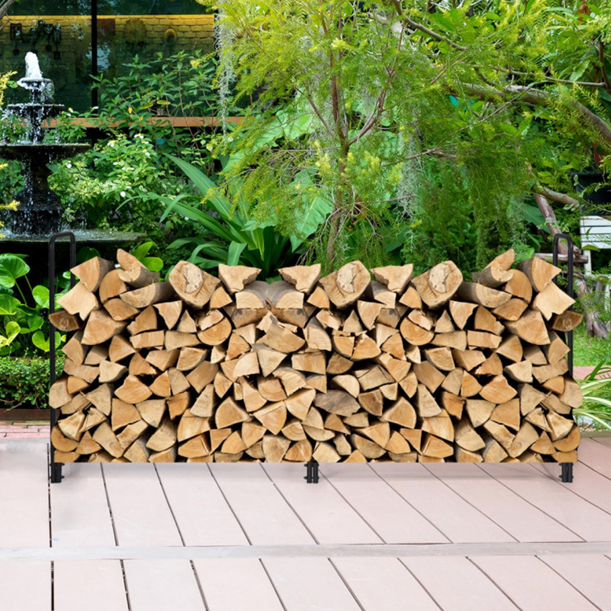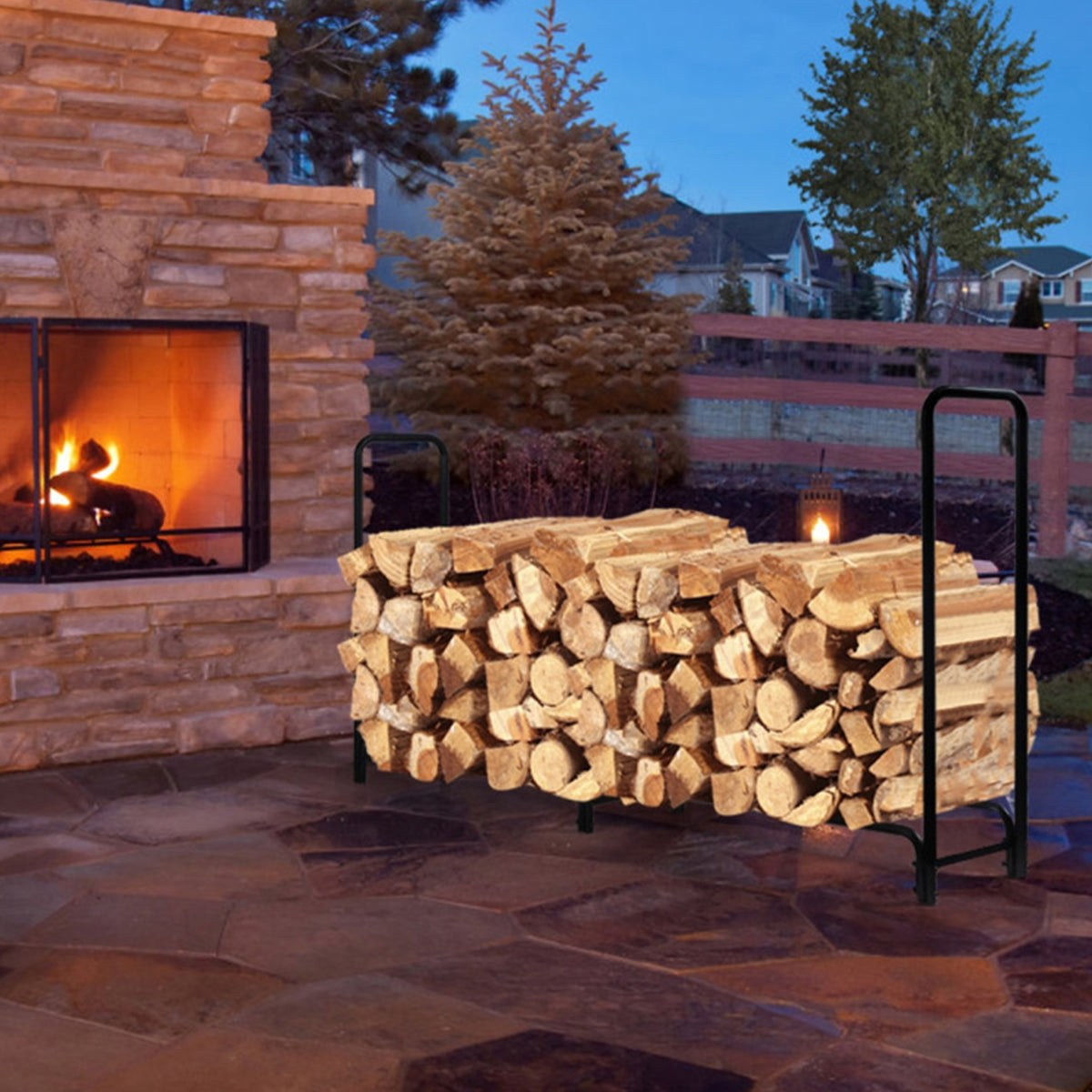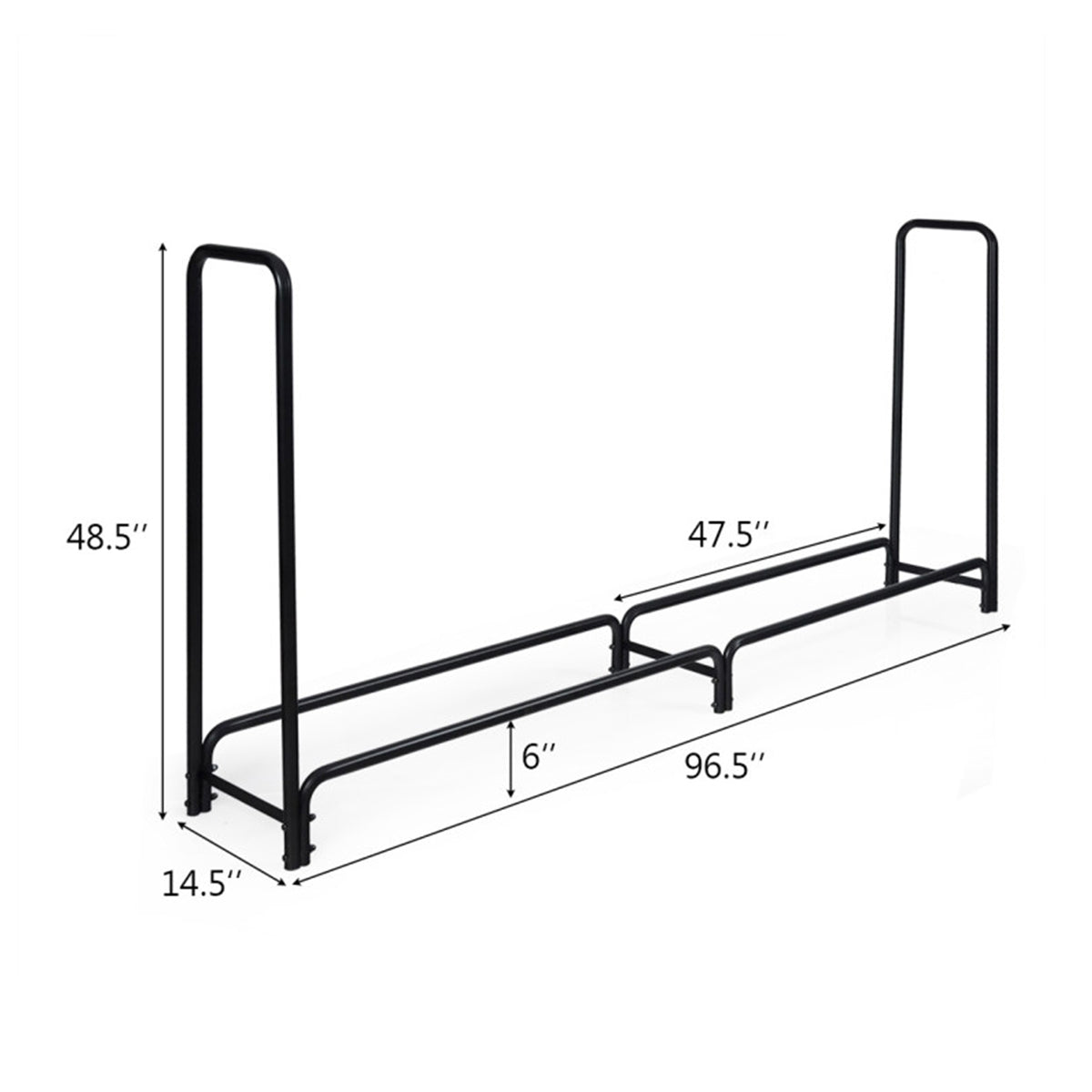 Organize your firewood with the 8' Outdoor Steel Firewood Log Rack, designed for heavy-duty storage and weather resistance. Made with thickened tubular steel, this log rack holds up to 1100 lbs and keeps logs 6'' off the ground, promoting airflow and reducing dampness. The black baking finish is rustproof, making it suitable for any outdoor or indoor environment. The rack’s sturdy, open design provides ample space for approximately 1 face cord of firewood, keeping it neat and accessible by your fireplace or outdoor fire pit.