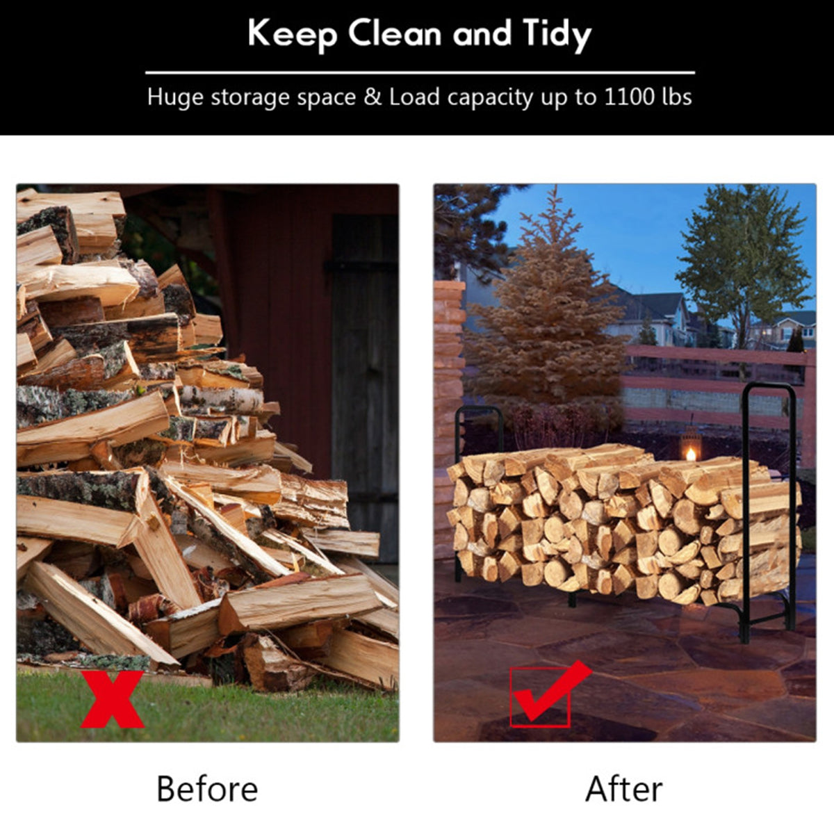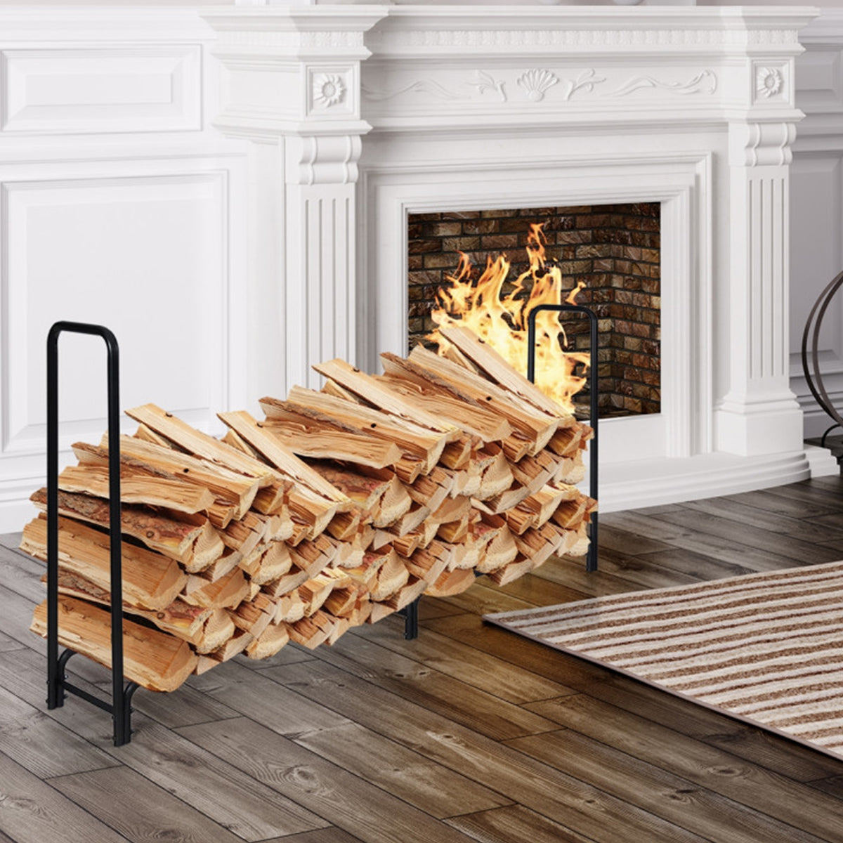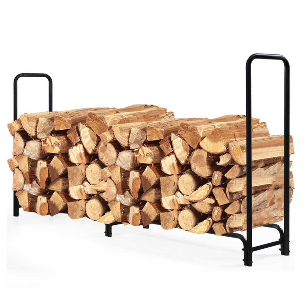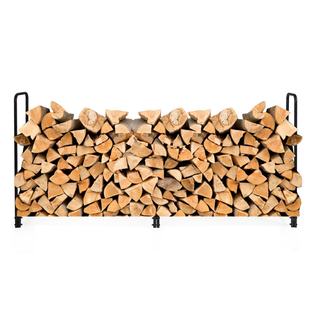 Organize your firewood with the 8' Outdoor Steel Firewood Log Rack, designed for heavy-duty storage and weather resistance. Made with thickened tubular steel, this log rack holds up to 1100 lbs and keeps logs 6'' off the ground, promoting airflow and reducing dampness. The black baking finish is rustproof, making it suitable for any outdoor or indoor environment. The rack’s sturdy, open design provides ample space for approximately 1 face cord of firewood, keeping it neat and accessible by your fireplace or outdoor fire pit.