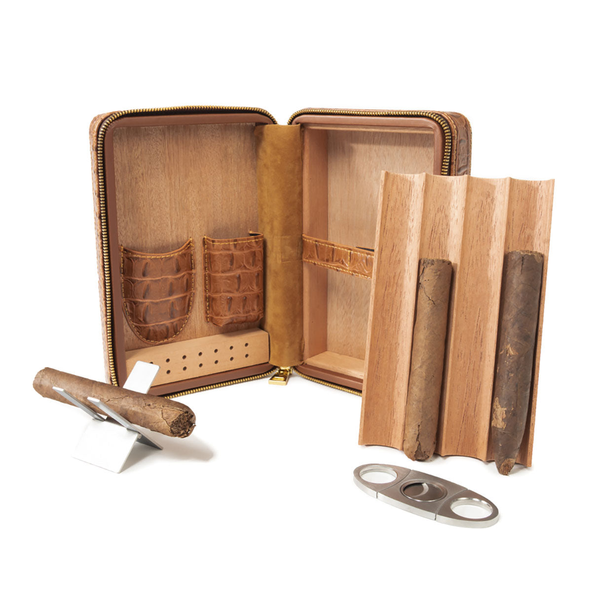 - Includes cutter, humidifier, and cigar stand