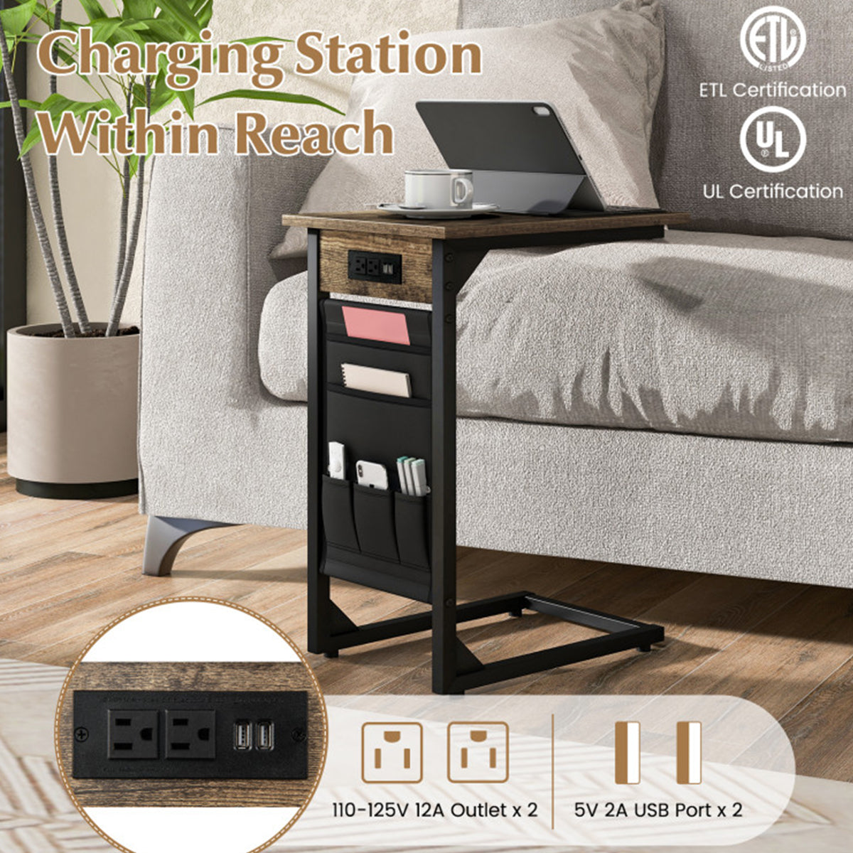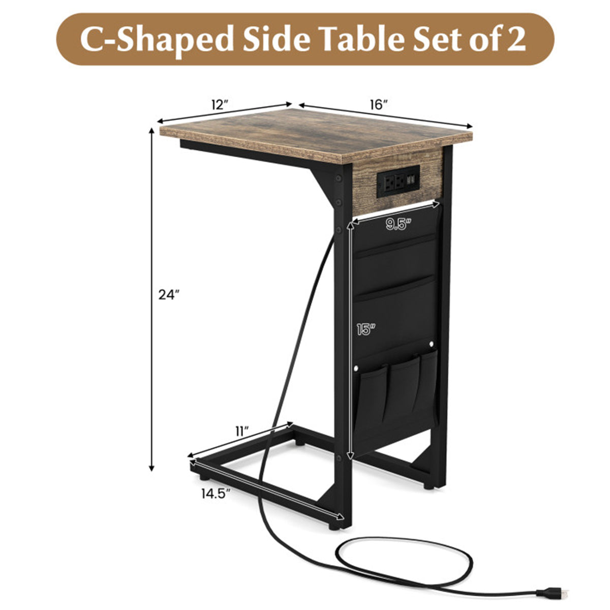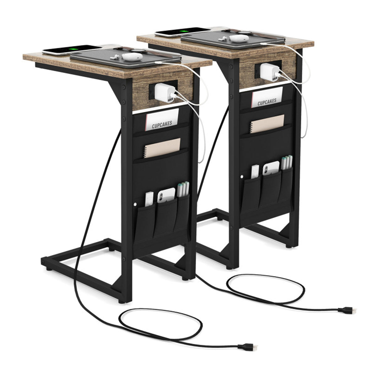 C-Shaped End Tables with Charging Station (Set of 2)