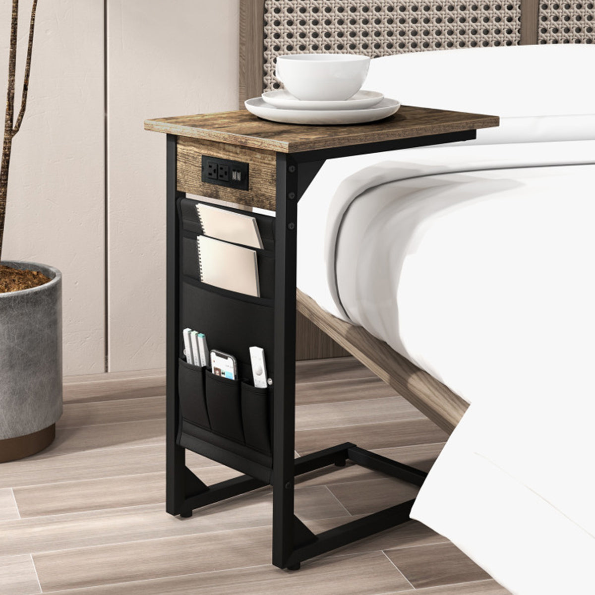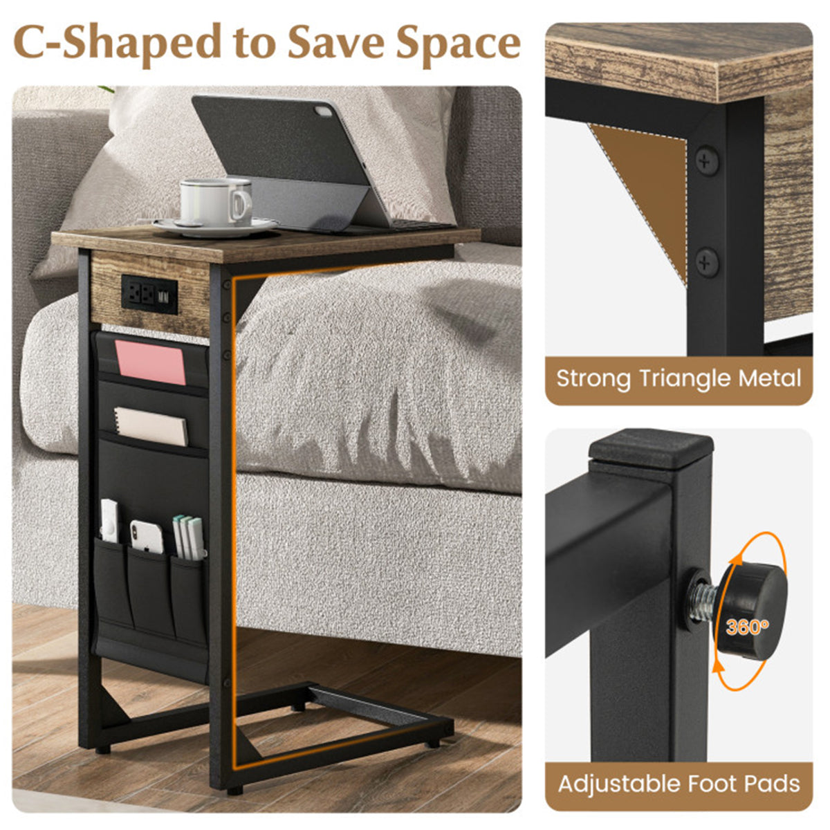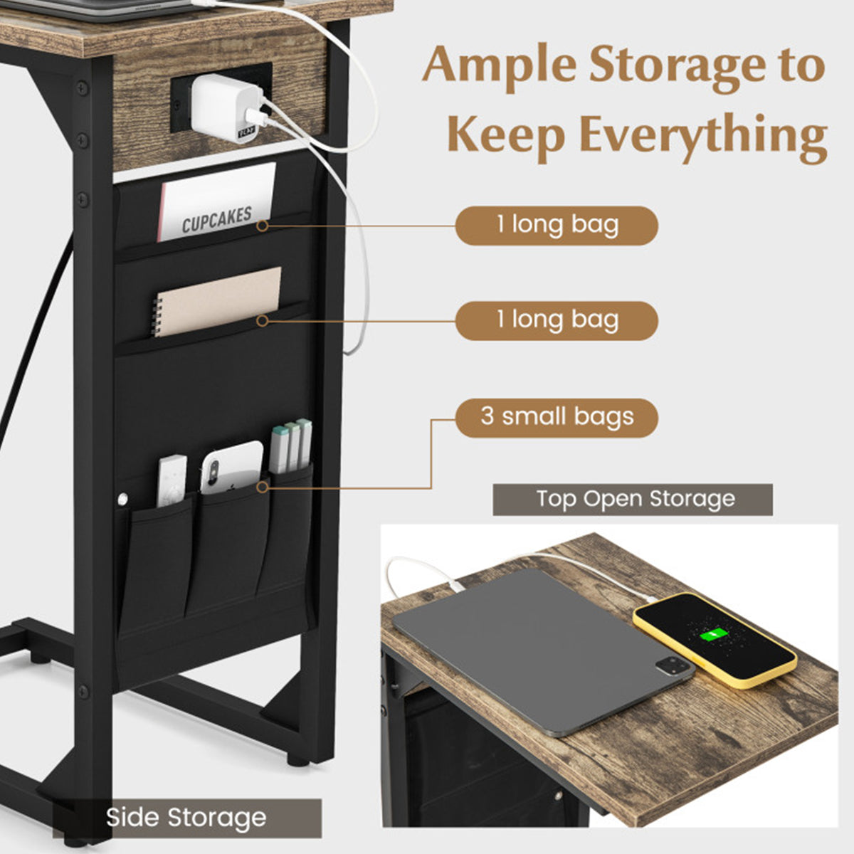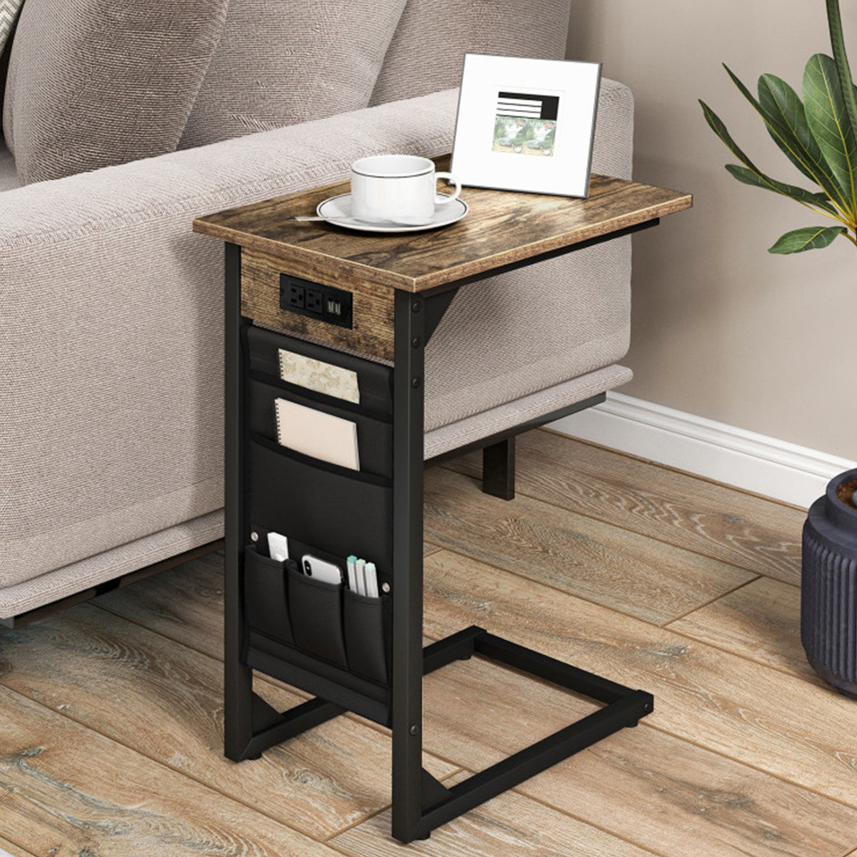 C-Shaped End Tables with Charging Station (Set of 2)