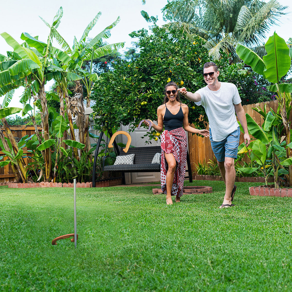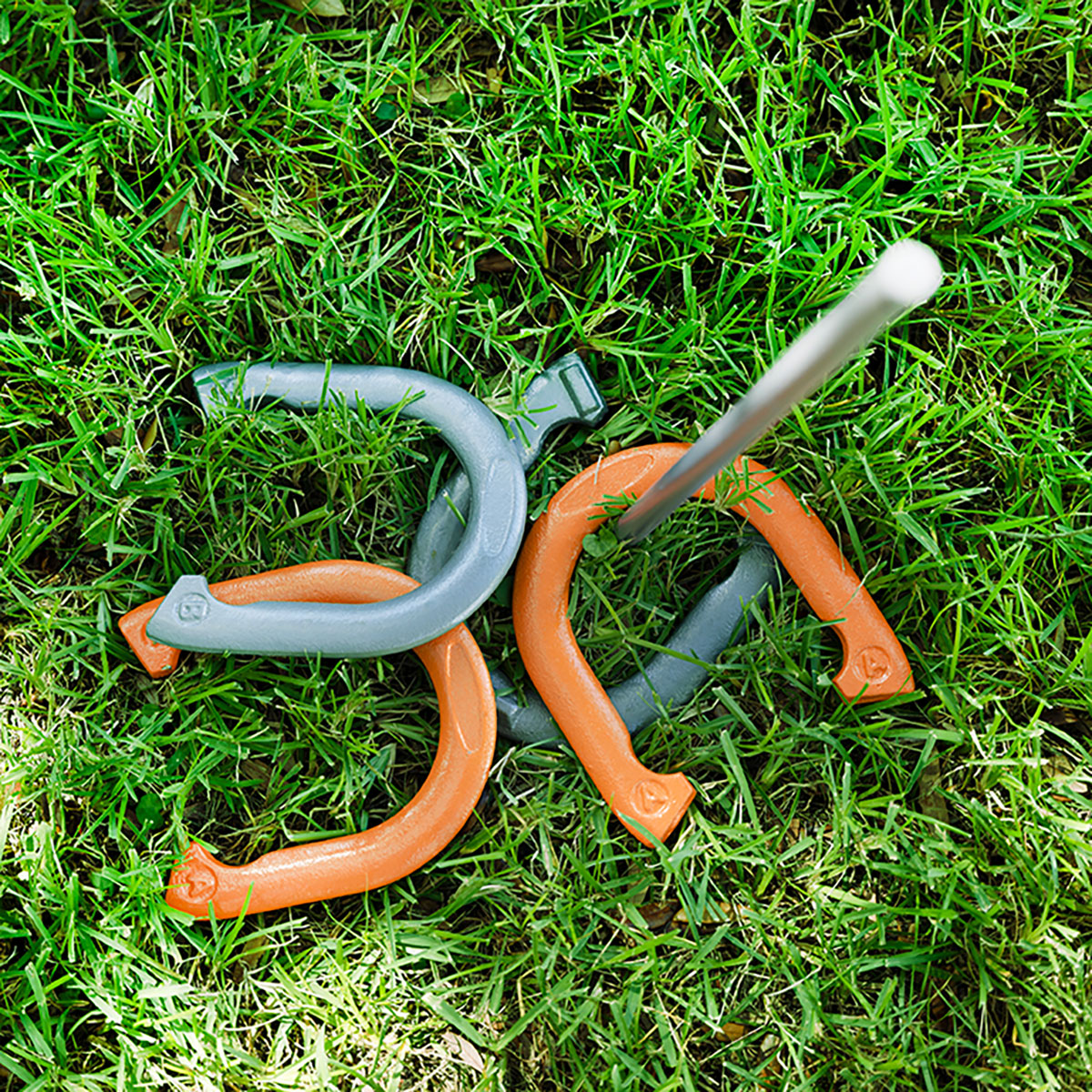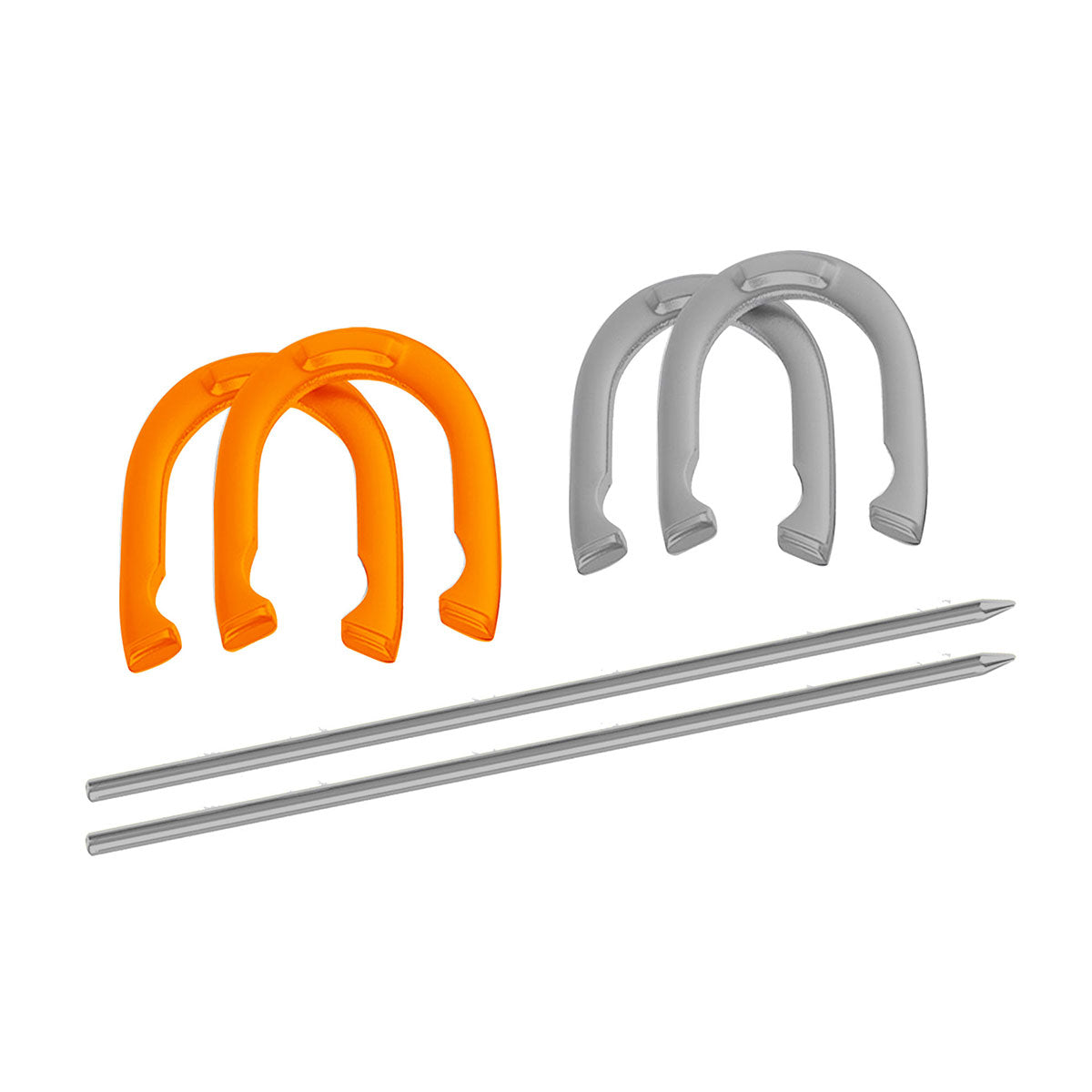 Bring timeless outdoor fun to any gathering with this rugged metal horseshoe set. Featuring two orange and two silver horseshoes and a pair of sturdy stakes, this set is ready for backyard battles or campsite competitions. The Realtree Edge camo canvas case makes it easy to store and transport, while the game itself is great for improving accuracy and coordination at any age.