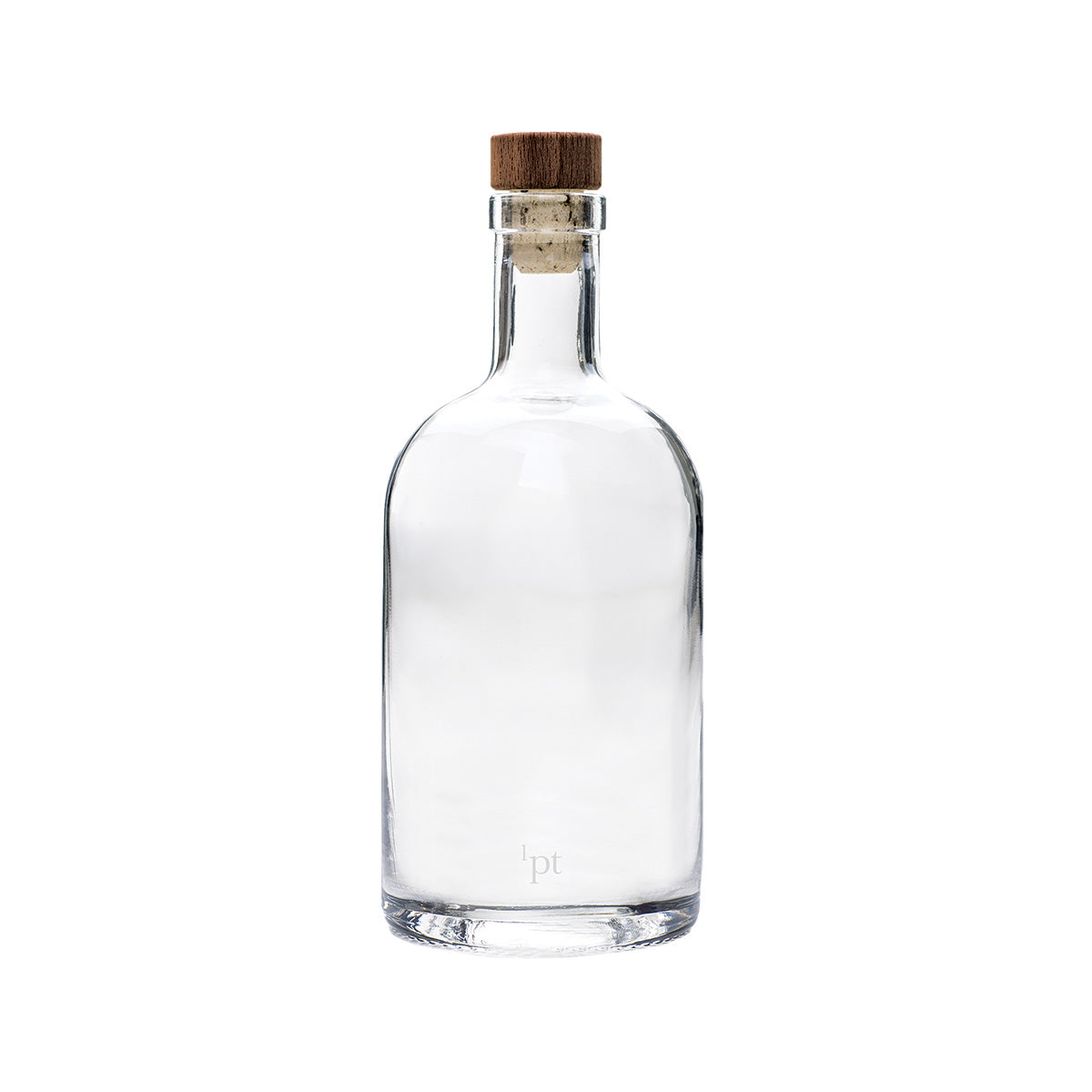 • 750ml bar-grade reusable glass bottle with walnut stopper
