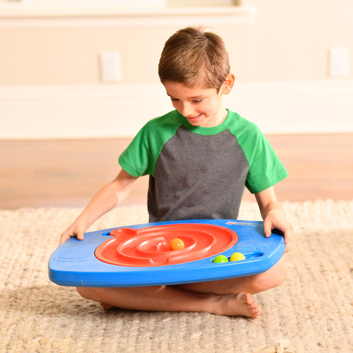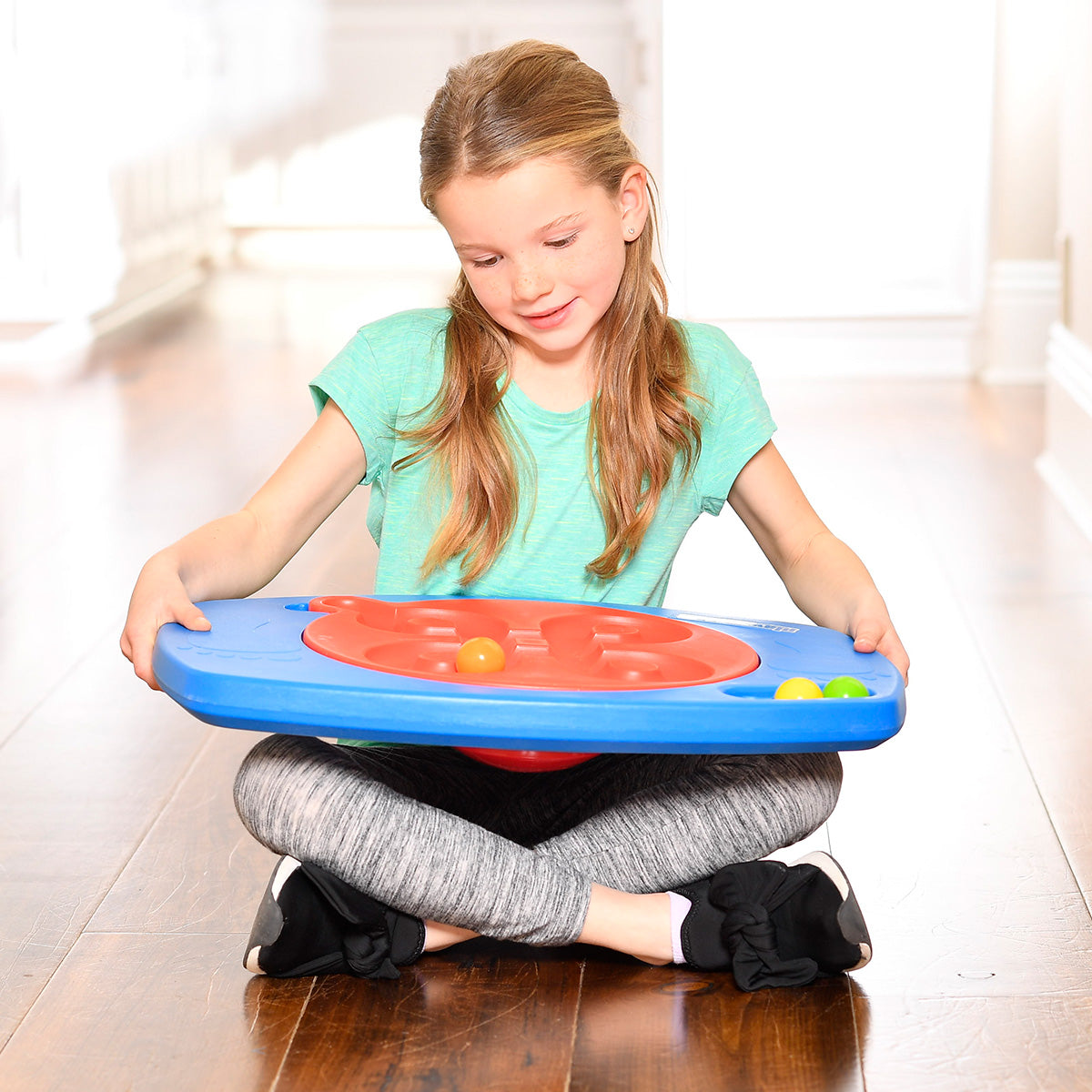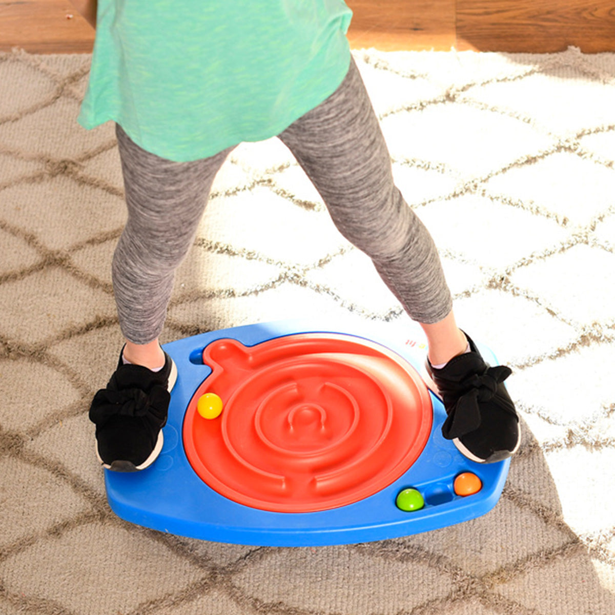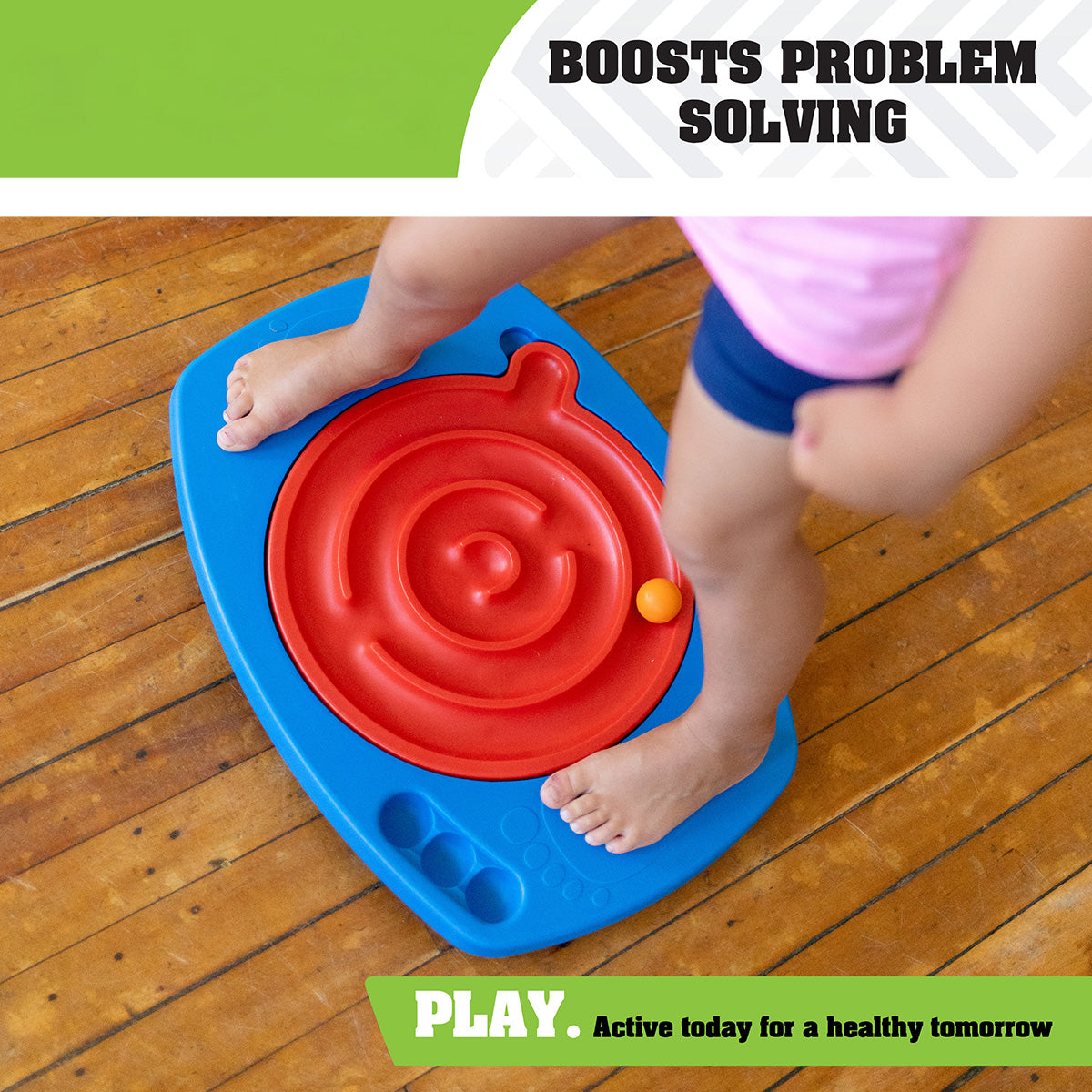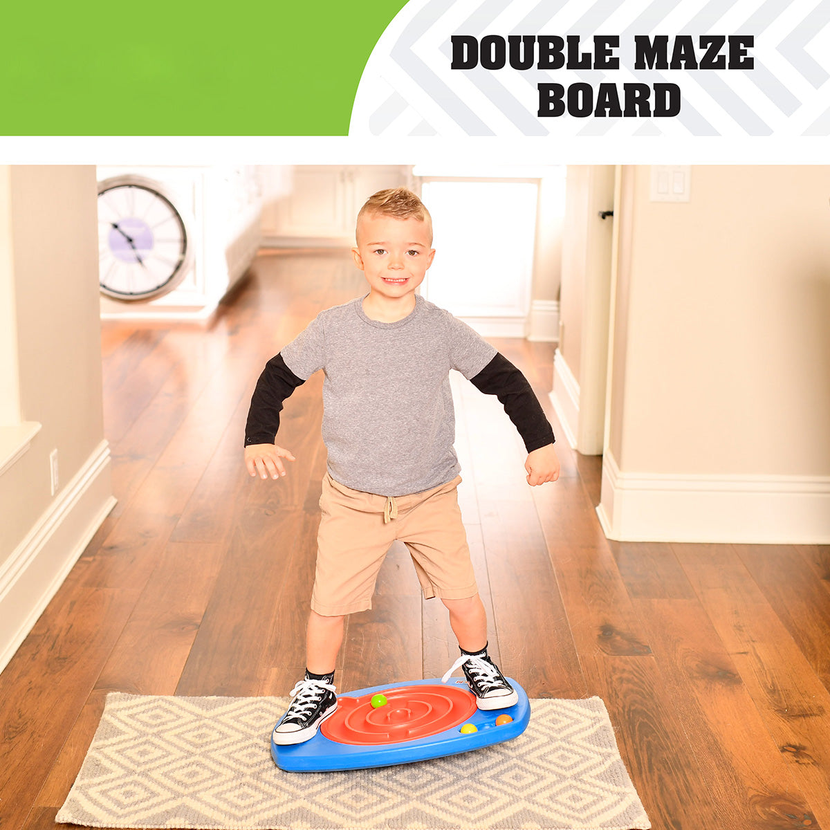 Build core strength, balance, and focus with this double-sided maze balance board. Kids can use both hands and feet to navigate three colorful balls through two distinct maze patterns, promoting motor skills, hand-eye coordination, and focus. Designed for kids ages 3 and up, this board is sturdy and supports up to 150 lbs. Ideal for solo play or fun challenges with friends, this interactive balance board makes a perfect addition to any playroom or backyard to inspire active play and brain engagement. For ages 3+.