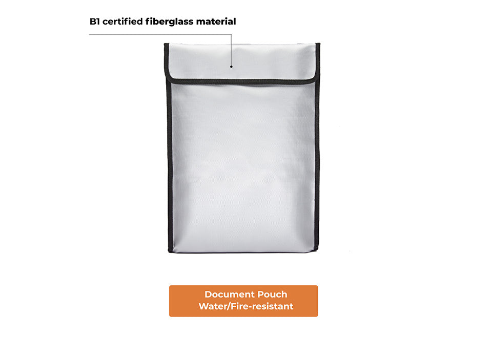 • Fire- and water-resistant pouch