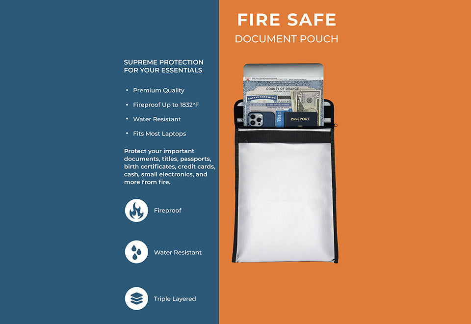 The Fireproof Document Pouch is made with a triple layer of high-quality, silicone-coated fiberglass, making it 100% fireproof and water-resistant.
