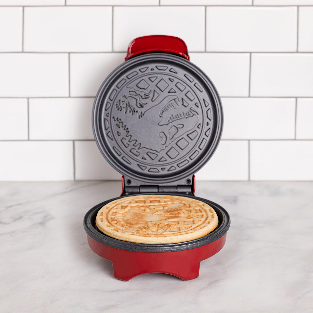 • Imprints T-Rex silhouette on every waffle