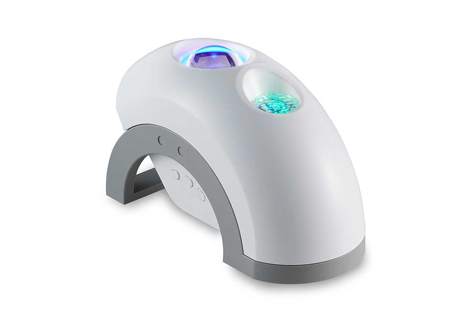 The Laser Nebula Projector creates a wide range of lighting effects with a brilliant green laser and a blue nebula cloud for an otherworldly effect.