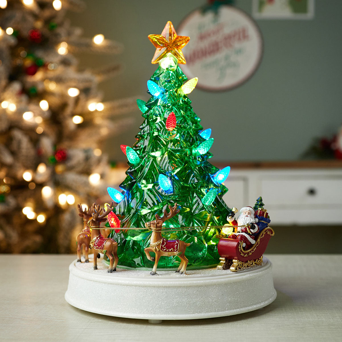- Rotating Christmas tree with Santa’s sleigh & reindeer