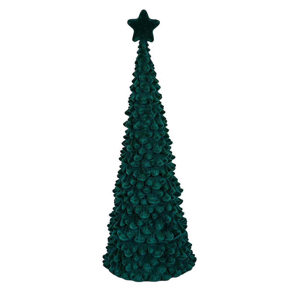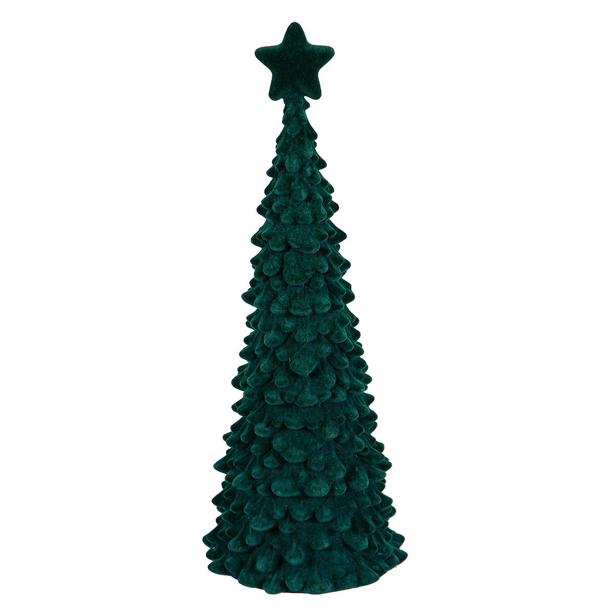 • Set of 2 flocked trees with glitter accents