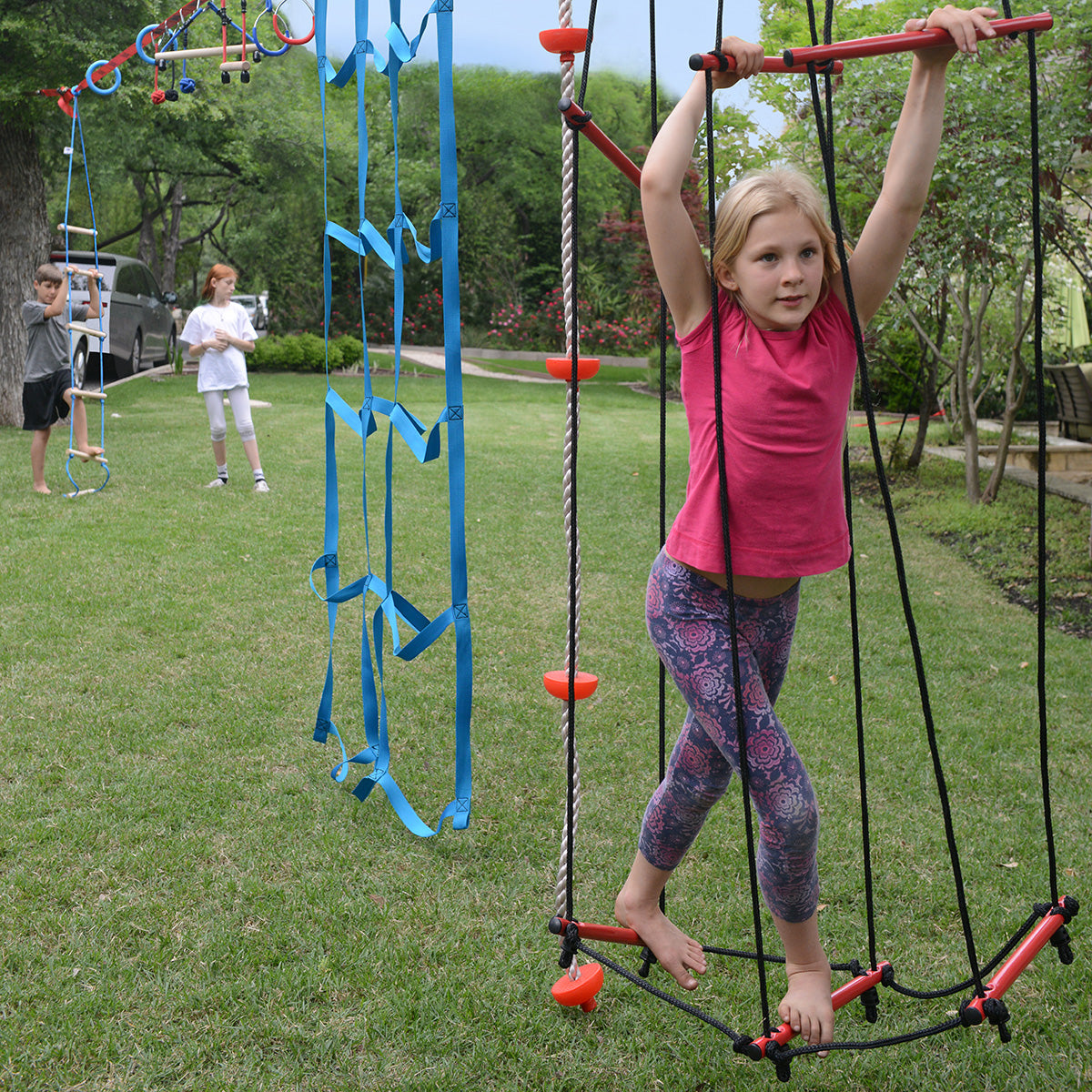 Add an extra level of excitement to any NinjaLine setup with the Ninjaline Rickety Bridge. This accessory challenges kids to develop balance and strength while navigating a unique swinging bridge. Built with durable, high-quality materials and a weight limit of 250 lbs, the Rickety Bridge encourages active play, agility, and confidence. A perfect addition to backyard obstacle courses, it’s designed for easy attachment to your existing NinjaLine, letting kids experience endless fun and safe adventure.