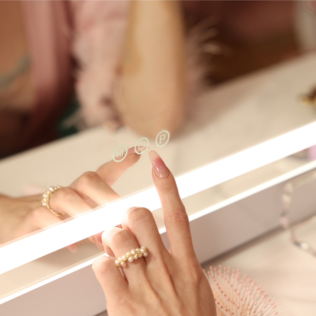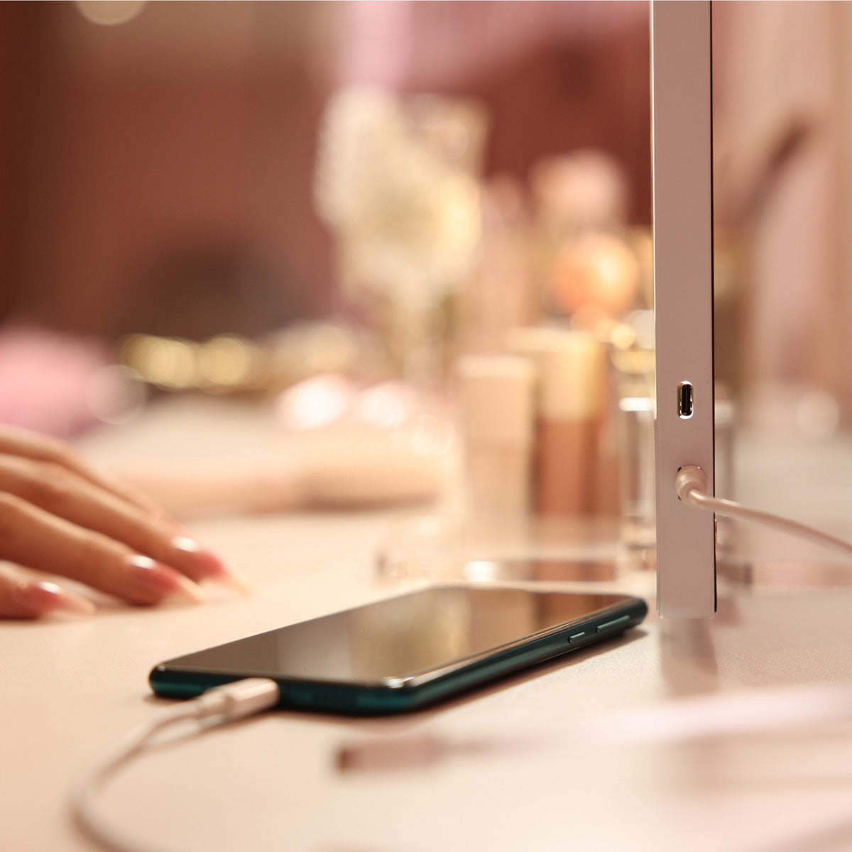Upgrade your routine with the Omni-Glow LED Hollywood Mirror, featuring Monroe’s signature Omni-Glow Technology for perfectly even light distribution. With 276 dimmable LEDs and three lighting temperatures (Soft White, Natural Daylight, and Neutral White), this extra-large mirror provides the ideal glow for any setting. The dual-use design lets you set it on a vanity or hang it on the wall, while the USB-C port keeps your phone charged as you get ready. Lightweight and sleek, this 31'' mirror is a stylish, functional addition to any room.