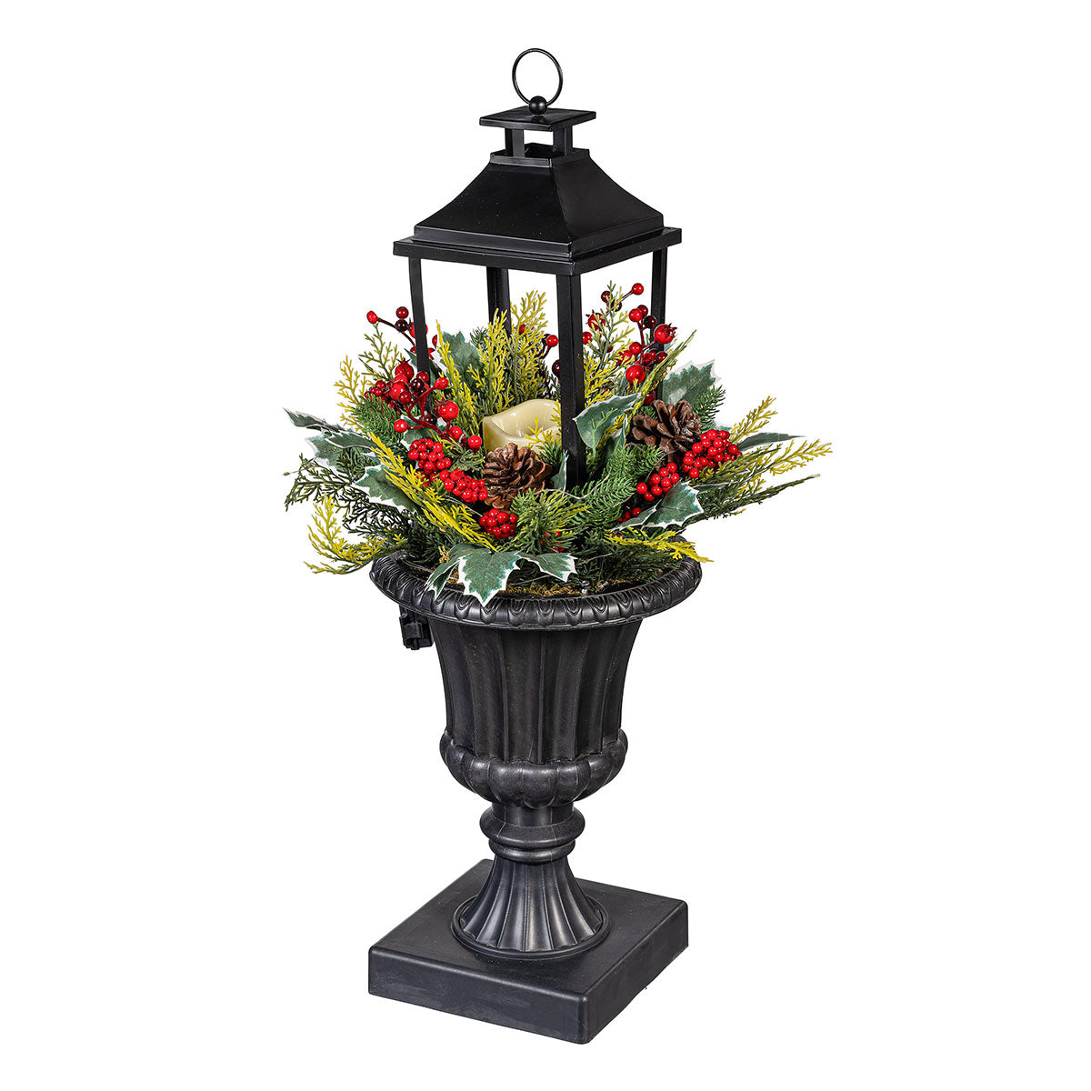 Add a timeless woodland charm to your porch, patio, or indoor space with this elegant faux holly berry lantern. Crafted from weather- and UV-treated materials, it’s designed to withstand the elements while providing a warm, inviting glow. Its classic floral arrangement and durable construction make it ideal for holiday parties, gatherings, or everyday ambiance. This lantern is a versatile accent that blends beautifully with various décor styles and lasts for years.