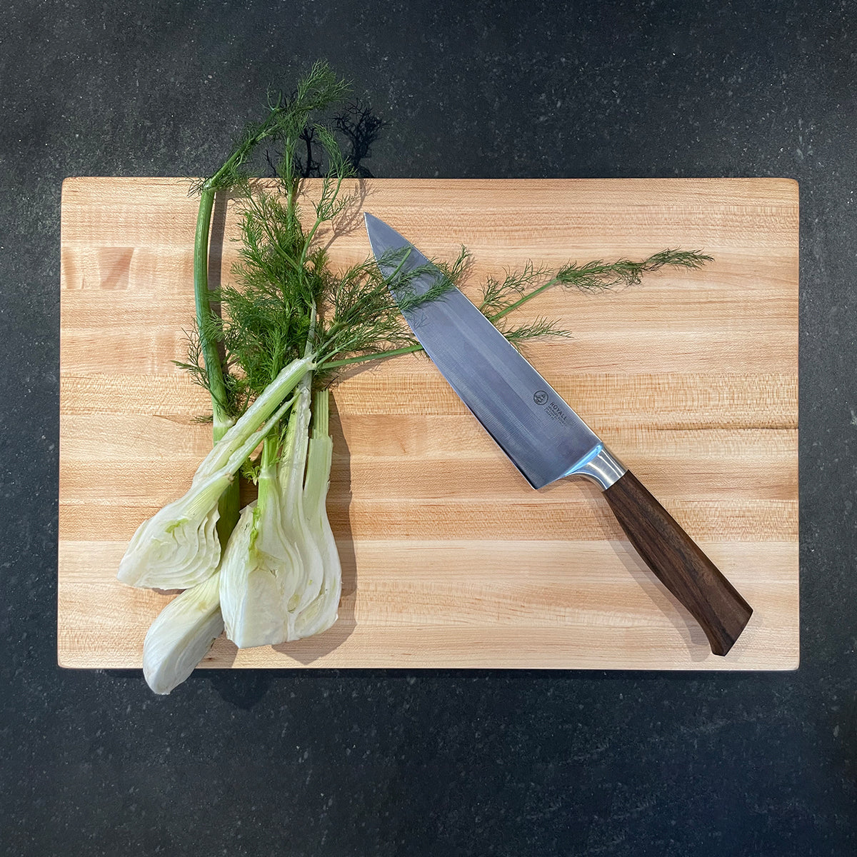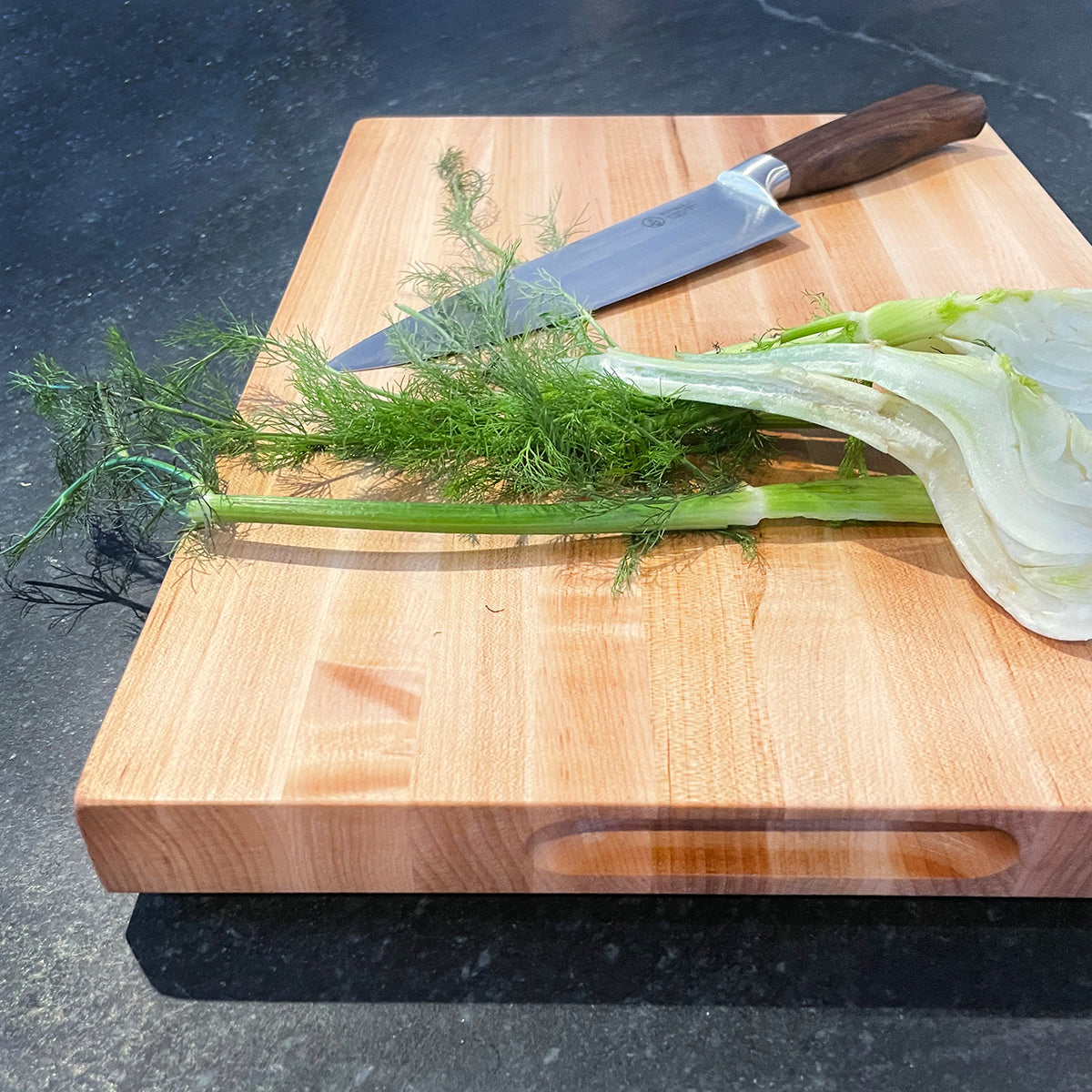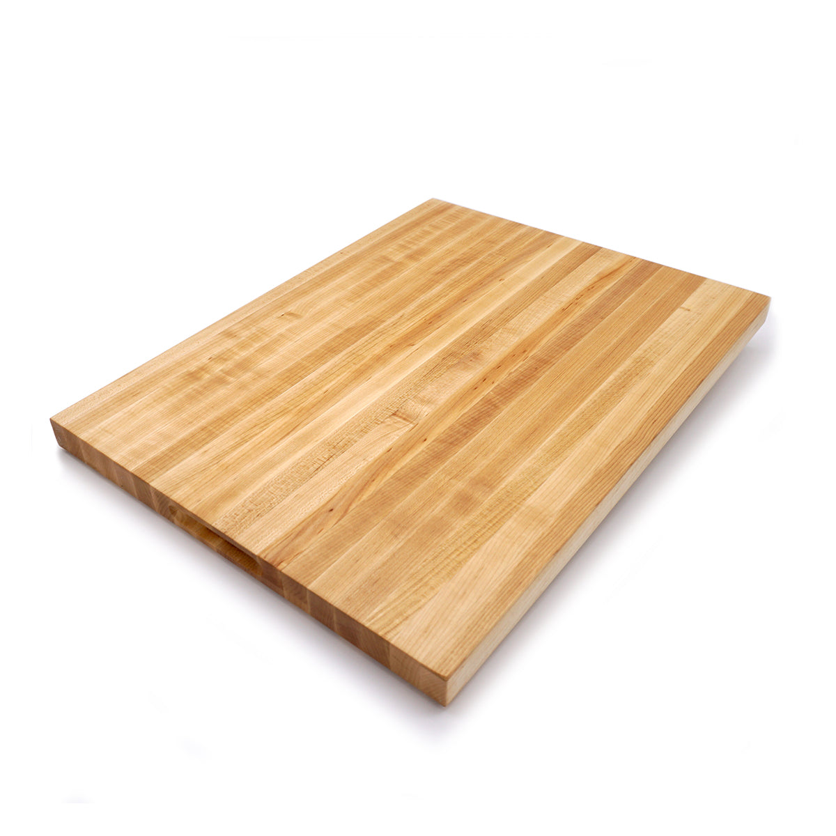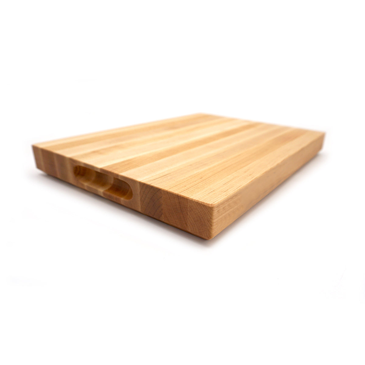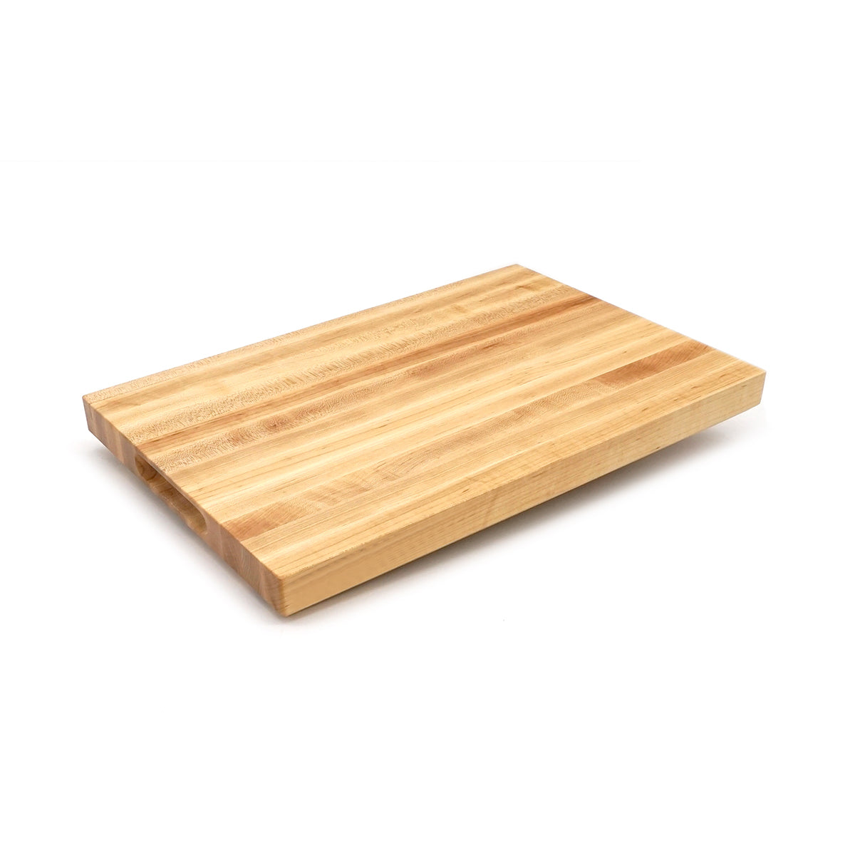 The Professional Edge-Grain Maple Cutting and Carving Board is expertly crafted from sustainably harvested North American maple, providing both beauty and durability. Available in three sizes—14'' x 10'', 18'' x 12'', and 24'' x 18''—this board is perfect for all kitchen tasks, from cutting vegetables to carving roasts. The edge-grain construction ensures the board can withstand daily use without showing heavy cut marks, while the routed handles offer ease of movability. Finished with a protective blend of mineral oil and beeswax, this USA-made board promises to stand the test of time. Whether for everyday use or special occasions, this board offers both functionality and style.
