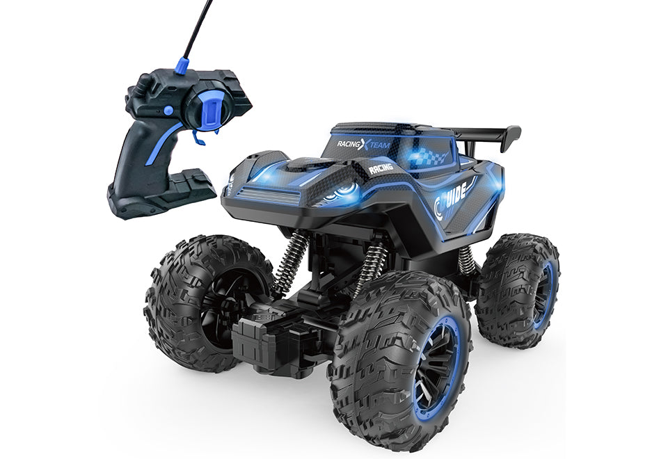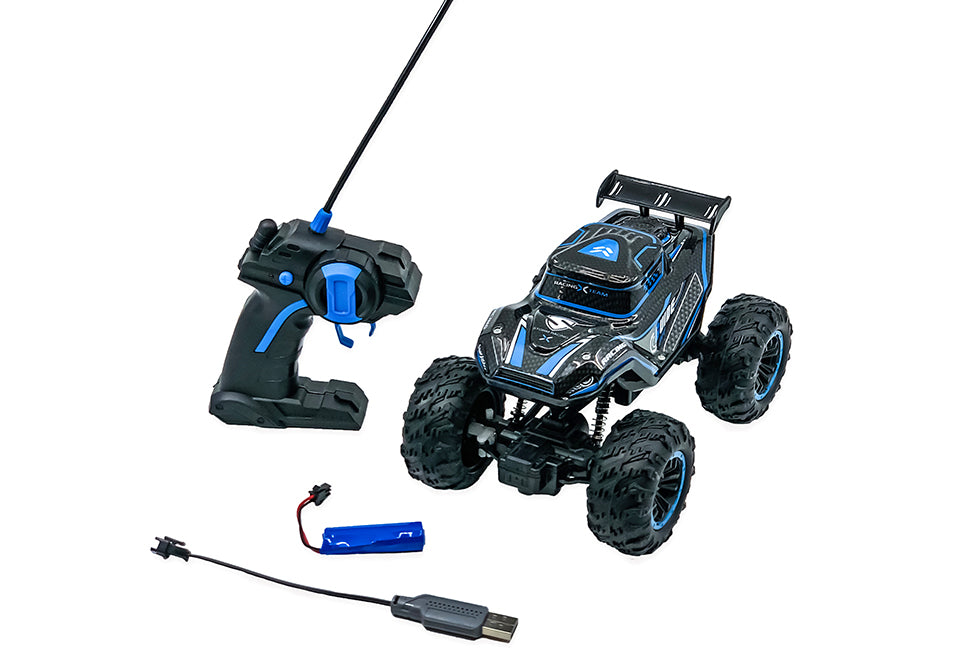 Get ready for thrilling adventures with the Timber Rover Off-Road RC Monster Truck. This dynamic RC truck boasts an elevated body, full suspension, and oversized wheels, making it perfect for tackling obstacles, hills, and ramps. The included trigger remote control offers precise movement in all directions, while the truck’s illuminating and flashing lights add an extra layer of excitement for evening play. Powered by a rechargeable lithium-ion battery, the Timber Rover ensures long-lasting fun. For Ages 6+, this RC monster truck is built for endless off-road excitement.