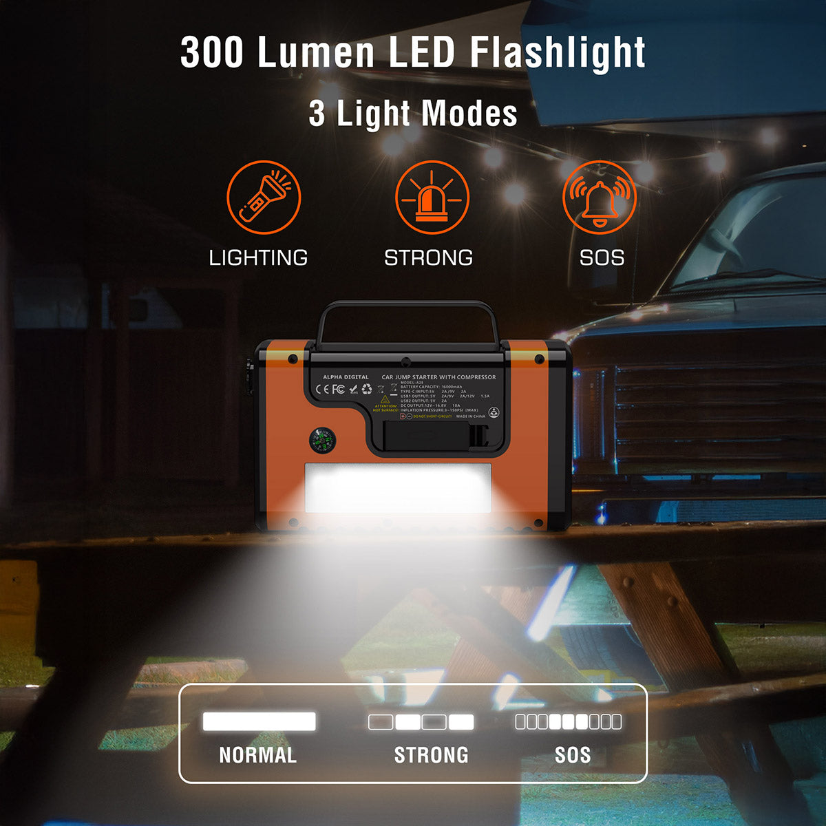 Be prepared for the unexpected with the 5-in-1 Jump Starter, a versatile automotive essential designed to handle roadside needs with ease. This all-in-one device functions as a jump starter for 12V vehicles, a tire inflator with real-time digital pressure display, a handheld vacuum for interior messes, a power bank for charging devices, and an LED emergency flashlight. The built-in air compressor automatically stops at the preset pressure, while multiple safety protections help ensure reliable operation. Compact and portable, it’s ideal for keeping in your trunk for everyday driving, road trips, or emergency situations.