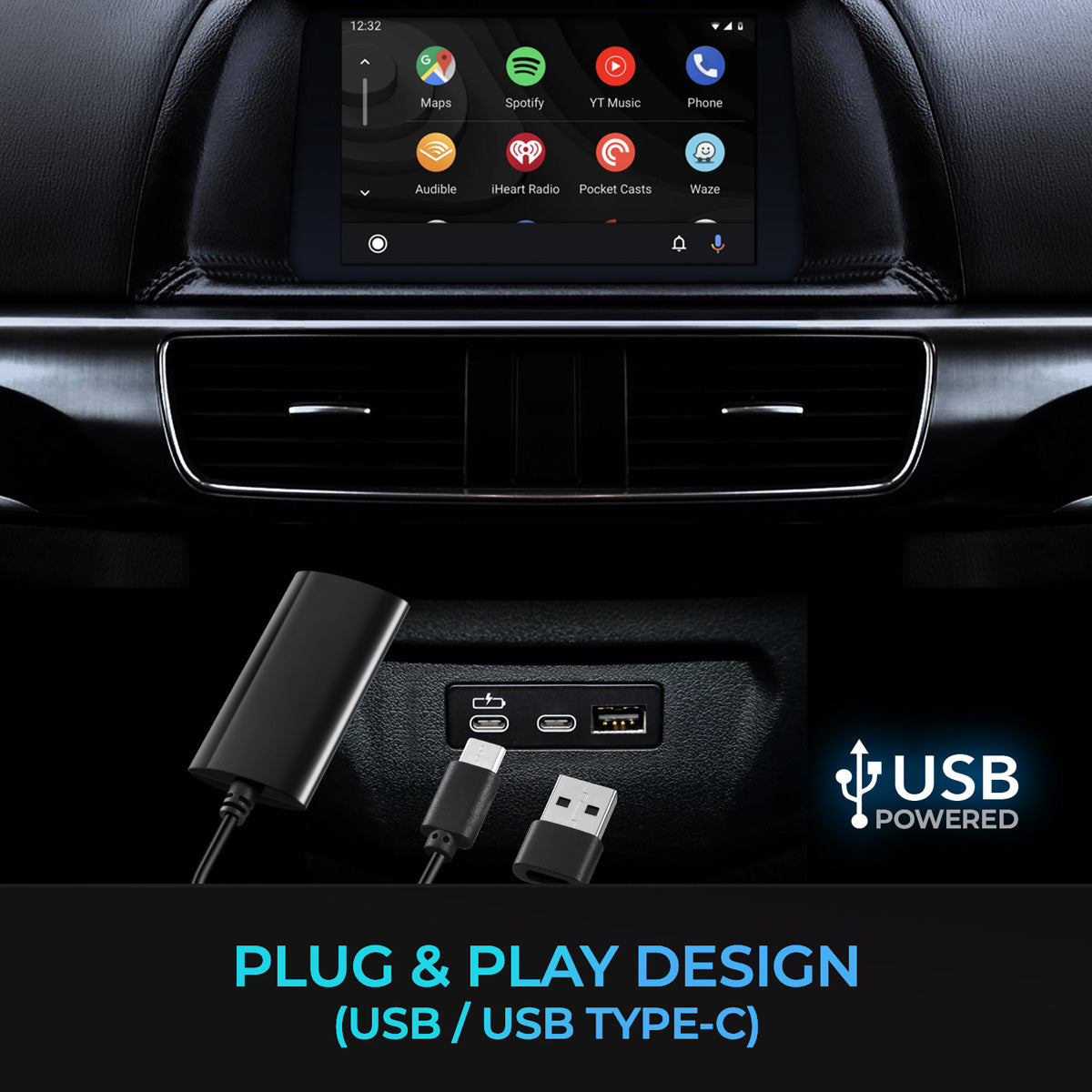 - Wireless CarPlay or Android Auto USB Adapter