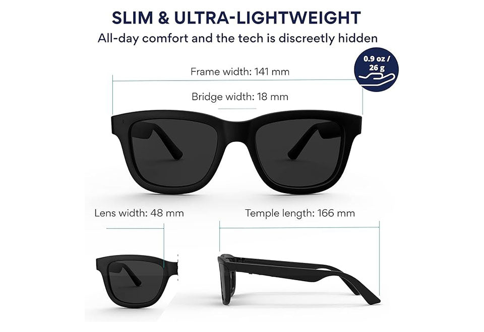 • 166mm x 141mm x 18mm (arm length, temple-to-temple width, frame height)